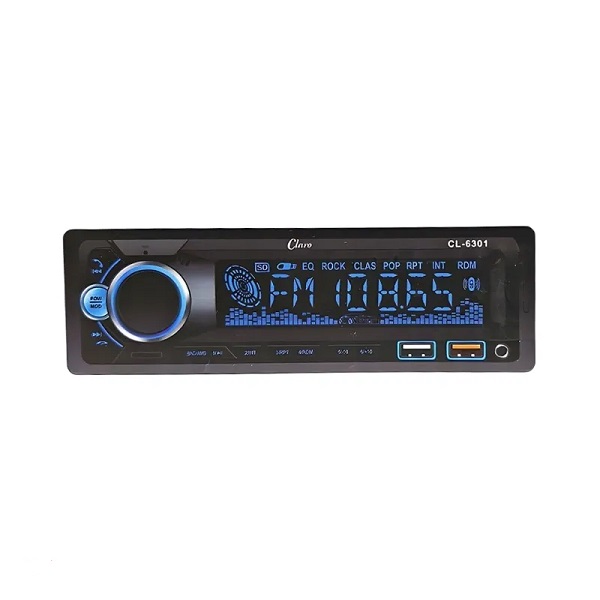 رادیو پخش کلارو مدل CL-6301 یک دستگاه صوتی کاربردی و مقرونبهصرفه است که امکانات متنوعی را در کلاس 1DIN ارائه میدهد. این مدل دارای پنل ثابت است و قابلیت تغییر رنگ هفترنگ (مولتیکلر) دارد. همچنین از IC صدای قوی IC7388 بهره میبرد که عملکرد صوتی بهتری ارائه میکند. دو درگاه USB روی پنل جلویی وجود دارد؛ یکی برای پخش فلش و دیگری مخصوص شارژ موبایل. دستگاه با ریموت کنترل طرح پایونیر همراه است تا کاربر بتواند از راه دور تنظیمات را کنترل کند.