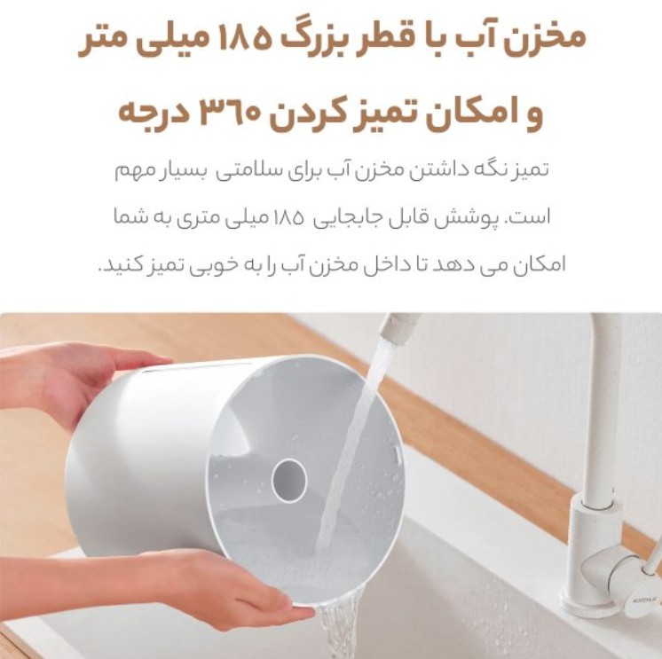 صدای عملکرد دستگاه بسیار پایین است و هنگام کار، مزاحمتی برای استراحت یا کار ایجاد نمیکند. همچنین، وقتی آب مخزن به پایان برسد، سیستم خاموشی خودکار فعال میشود تا از آسیب به قطعات داخلی جلوگیری کند.