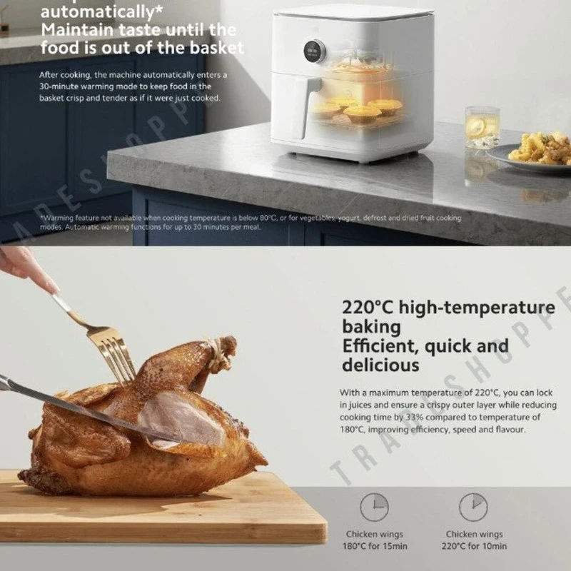 این دستگاه دارای قابلیتهایی مانند گرم نگه داشتن غذا پس از پخت، عملکرد بدون روغن برای کاهش چربی غذا، و اتصال هوشمند از طریق اپلیکیشن Mi Home است تا کاربر بتواند پخت را از راه دور کنترل کند. پوشش نچسب داخلی (PTFE یا پوشش ۷ لایه) باعث میشود مواد غذایی به جداره نچسبند و تمیز کردن دستگاه ساده شود. سیستم ایمنی با خاموشی خودکار تضمین میکند که در صورت بالا رفتن دما یا بروز خطا، دستگاه متوقف شود.